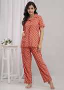 असामी महिलाओं के लिए प्रिंटेड बैंगनी नाइट सूट सेट