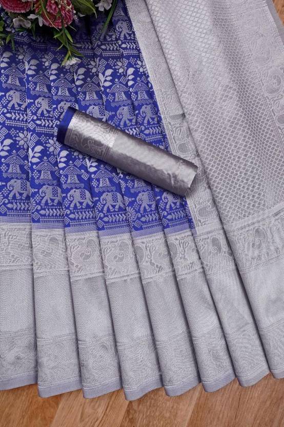 ASNR TREND Woven Kanjivaram Pure Silk Saree (Blue)