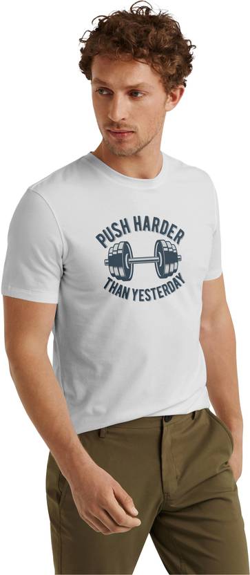 Men Printed Round Neck Pure Cotton White T-Shirt