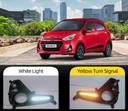 DRL Daytime running lights, Fog Lamp For Hyundai Grand i-10 -2019 Models (With Turn Indicator Function). Automaze Imported Fog Light LED DRL with Indicator Made with quality materials design to improve the looks of your car. Package includes Front Fog Light DRL set. Advantages:- Enhances vehicle visibility at night and in foggy conditions. Gives a added lights to the cars coming from the front. Improves vehicle aesthetics. 3 mode operation - White Fog Light, White DRL and Orange Indicator. All wiring kit included in the package. A must have for night and highway driving. Maintenance:- Clean with a damp cloth.