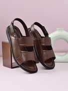 Suitable for casual outings, daily wear, light travel, and semi-formal events., Classic brown color for a versatile and timeless look that pairs with any outfit., Offered in a range of sizes to fit all foot shapes comfortably., Contemporary design with handcrafted stitching for a premium finish., Ideal for summer, spring, and fall, keeping your feet cool and relaxed., Delivered in a sturdy and eco-friendly box to protect the product during transit., A blend of traditional and modern styling, making these sandals perfect for men of all ages.