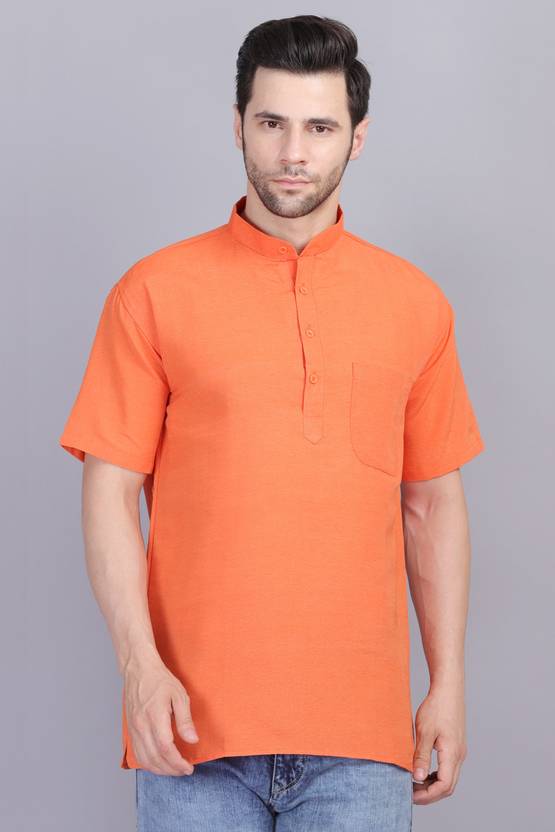 एक्सोलोटL पुरुषों के लिए सॉलिड स्ट्रेट कुर्ता (नारंगी)