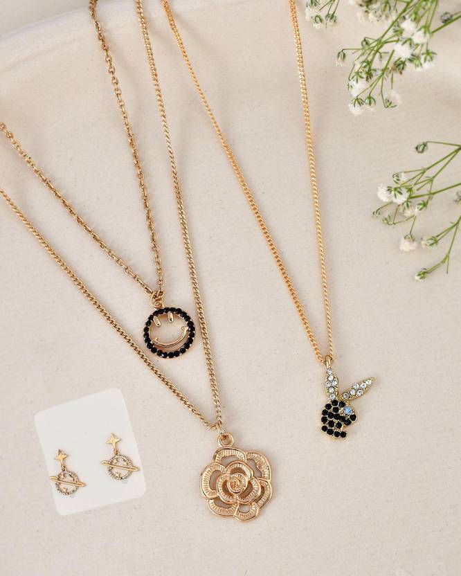 AZZURE JEWLS layered Necklaces with Earring for Women & Girls_(Pack of 2) Gold-plated Plated Alloy Layered
