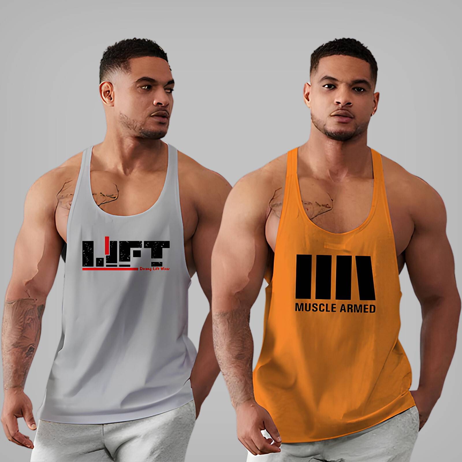 योर फिटनेस फैशन टू द लेवल विथ दिस पैक ऑफ 2 स्टाइलिश पॉलिएस्टर जिम वेस्ट्स फॉर मेन. डिज़ाइंड फॉर अल्टीमेट कम्फर्टेबल एंड परफॉर्मेंस, दीज मसल-फिट स्लीवलेस वेस्ट आर परफेक्ट फॉर इंटेंस वर्कआउट्स, डेली जिम रूटीन्स, आउटडोर रन्स, एंड कैज़ुअल स्पोर्टी वियर. मेड फ्रॉम हाई-क्वालिटी पॉलिएस्टर फैब्रिक, दीज जिम वेस्ट्स आर लाइटवेट, स्वेट-एब्सोर्बेंट, एंड क्विक-ड्राइंग – हेल्पिंग यू स्टे कूल एंड फ्रेश नो मैटर हाउ हार्ड यू ट्रेन. द ब्रीदेबल फैब्रिक एलॉज प्रॉपर सर्कुलेशन, व्हाइल द रेसरबैक डिज़ाइन प्रोवाइड्स फुल ऑफ मूवमेंट. जिम वेस्ट फॉर मेन वर्कआउट वेस्ट फॉर मेन मसल फिट जिम वियर पॉलिएस्टर जिम टी-शर्ट स्पोर्ट्स वेस्ट मेन क्विक ड्राई वेस्ट बॉडीबिल्डिंग वेस्ट प्रिंटेड जिम वेस्ट