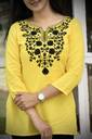 दिस कुर्ता इज़ डिज़ाइंड विथ ए स्ट्रेट कट, मेकिंग इट ए वर्सेटाइल एंड फ्लैट्टरिंग ऑप्शन फॉर मेनी बॉडी टाइप्स. ईट्स मेड फ्रॉम रेयॉन, ए फैब्रिक नोन फॉर इट्स सॉफ्टनेस एंड ड्रेप, व्हिच ऐड्स ए कम्फर्टेबल एंड फ्लॉवी एलिमेंट टू द गारमेंट. द एम्ब्रॉयडरी डिटेल्स आर लाइकली टू बी ए की फीचर, ऐडिंग ए टच ऑफ एलिगेंस एंड क्राफ्ट्समैनशिप. रेयॉन इज़ ऑल्सो नोन फॉर इट्स ब्रेथेबिलिटी, सो दिस कुर्ता कुड बी ए गुड चॉइस फॉर वार्मर वेदर ऑर फॉर लेयरिंग इन कूलर क्लाइमेट्स. इट कैन बी पेयर्ड विथ लेगिंग्स, चूड़ीदार्स, ऑर इवन जींस फॉर ए मॉडर्न ट्विस्ट ऑन ट्रेडिशनल स्टाइल.