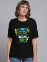 Women Printed Round Neck Cotton Blend Black T-Shirt