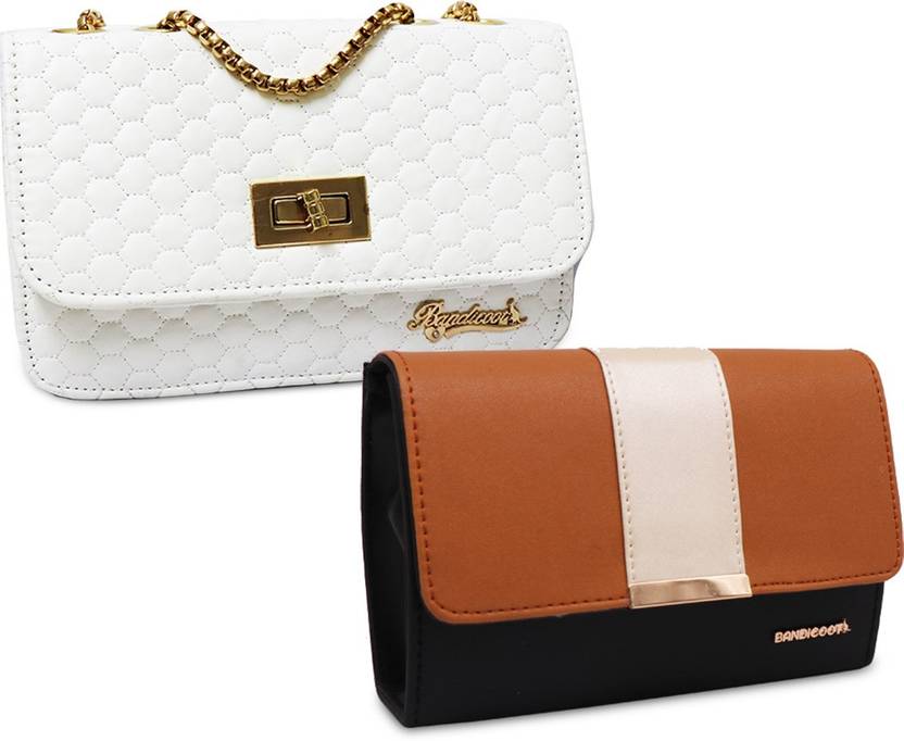 Multicolor Women Sling Bag - Medium WF WHITE LAVISH TGB SLING FOR WOMEN (Pack of 2)