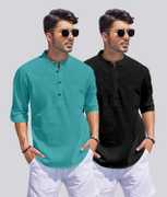 बेलस्टोन पुरुषों के लिए सॉलिड स्ट्रेट कुर्ता (हल्का नीला, हल्का हरा)