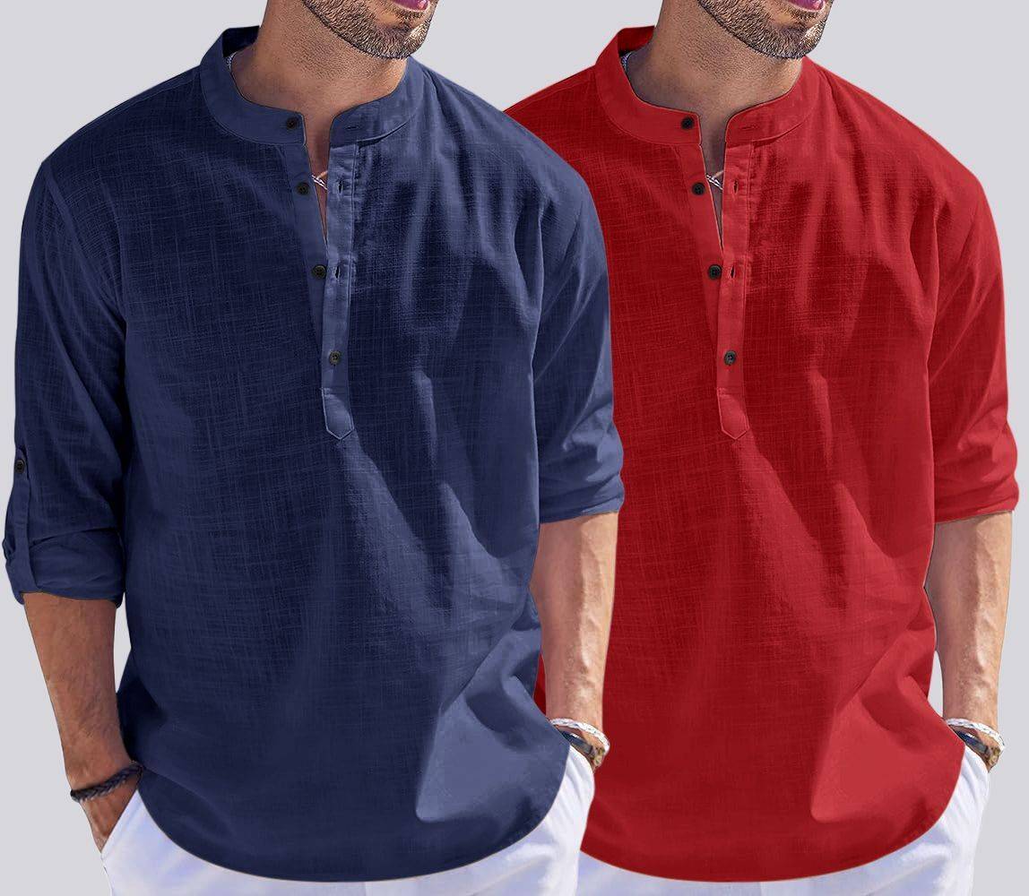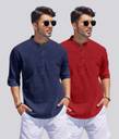 bellstone Pack of 2 Men Solid Cotton Blend Straight Kurta (Multicolor)