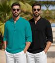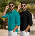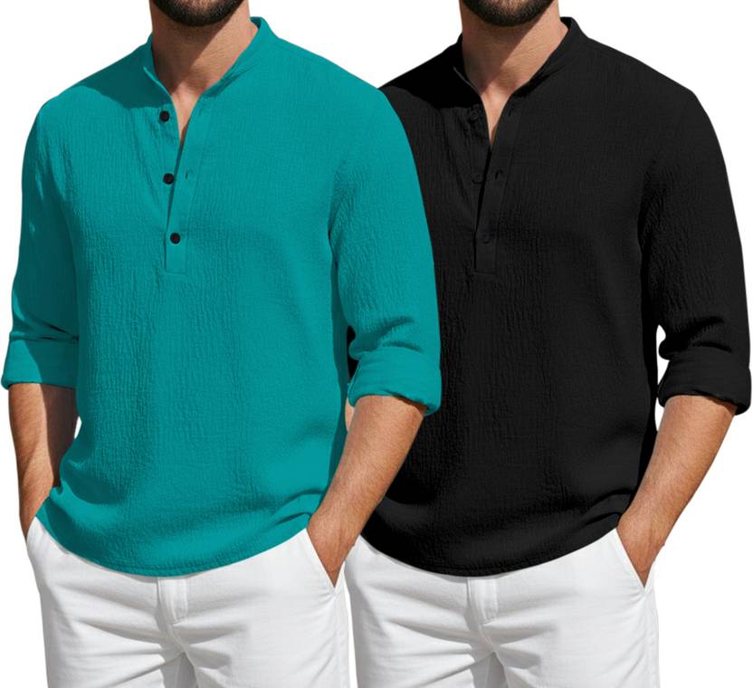 Pack of 2 Men Solid Cotton Blend Straight Kurta (Dark Green, Black)