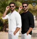 bellstone Pack of 2 Men Solid Cotton Blend Straight Kurta (White, Black)