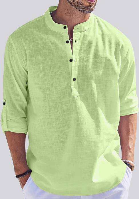 बेलस्टोन पुरुषों के लिए सॉलिड स्ट्रेट कुर्ता (हल्का हरा)
