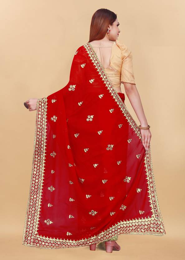 BEST ENTERPRISE Embroidered Assam Silk Satin Saree (Red)