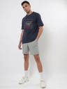 BEWAKOOF Oversized Men Printed Round Neck Pure Cotton Blue T-Shirt