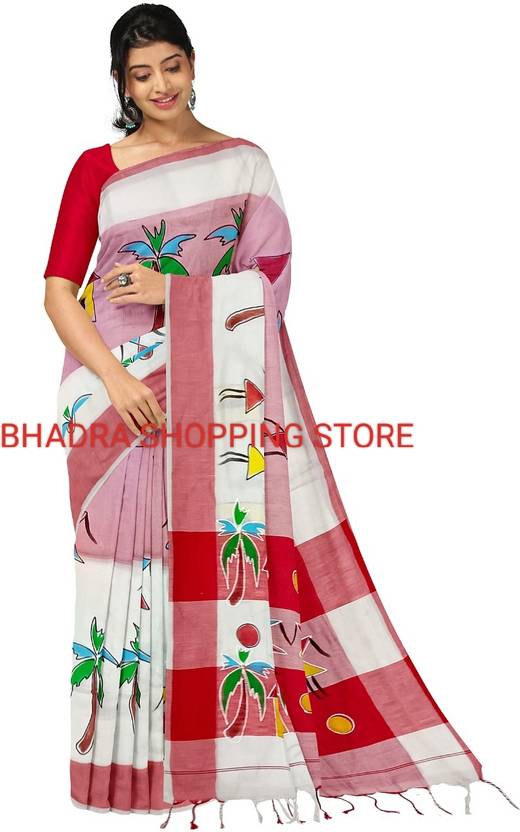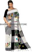 Bhadra Shopping Store Woven Handloom Pure Cotton Saree (White)
