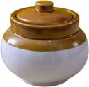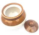 Bharani Handmade Round Pickle Jar,with Lid Ideal Gift for Family, Ceramic Aprox. 2000ml Tagine (White, Brown)