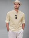 FireFish Men Solid Cotton Blend A-line Kurta (Beige)