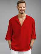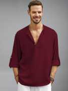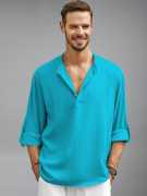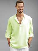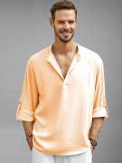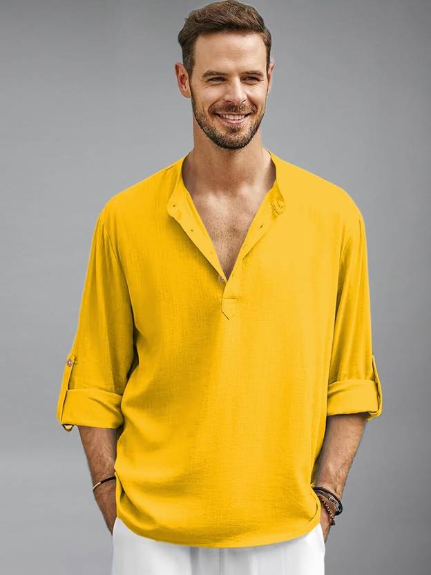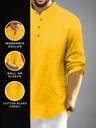Men Solid Cotton Blend A-line Kurta (Yellow)