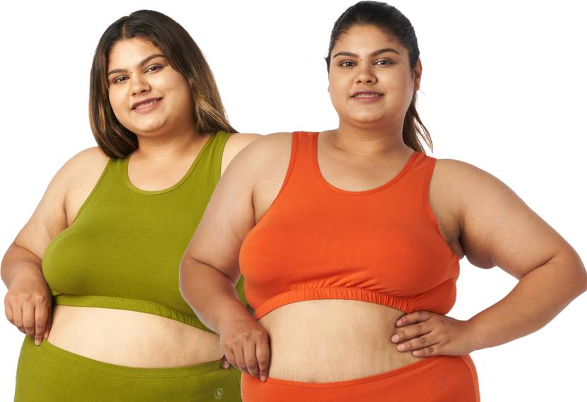 Bigtees Sleepbra For Plus Size Women Women Everyday Non Padded Bra (Green, Orange)
