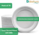 BIOPURIC Biodegradable Round Bagasse 7 Inch Tray (Pack of 75, Microwave Safe)