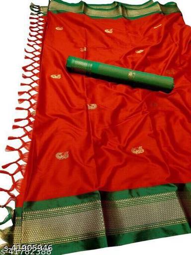 Solid/Plain Paithani Cotton Silk Saree (Multicolor)