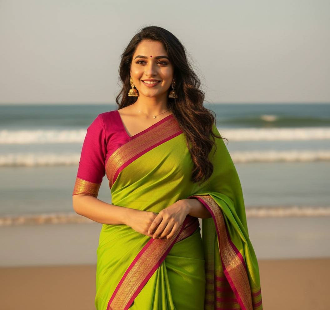 Solid/Plain Paithani Cotton Silk Saree (Multicolor)