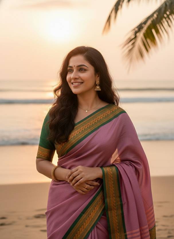 Solid/Plain Paithani Cotton Silk Saree (Multicolor)