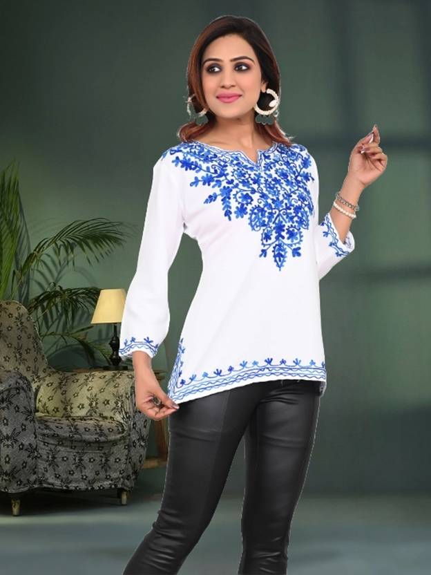 Elegant White Design: Featuring intricate white embroidery, this top adds a touch of elegance to your outfit, making it suitable for various occasions.