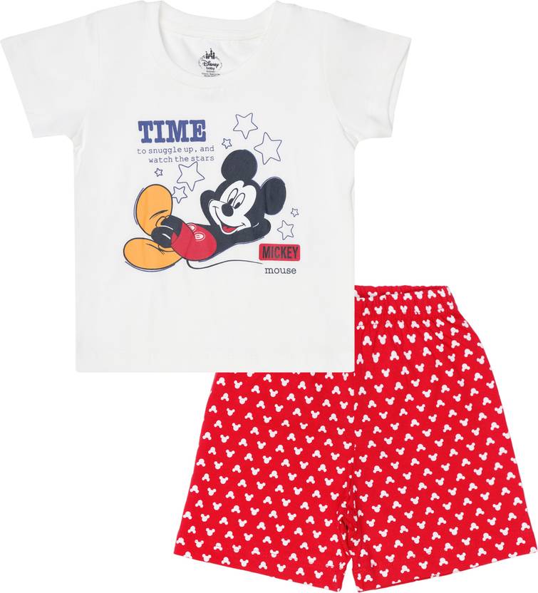 BodyCare Boys Mickey Casual T-shirt Shorts (White & Red)