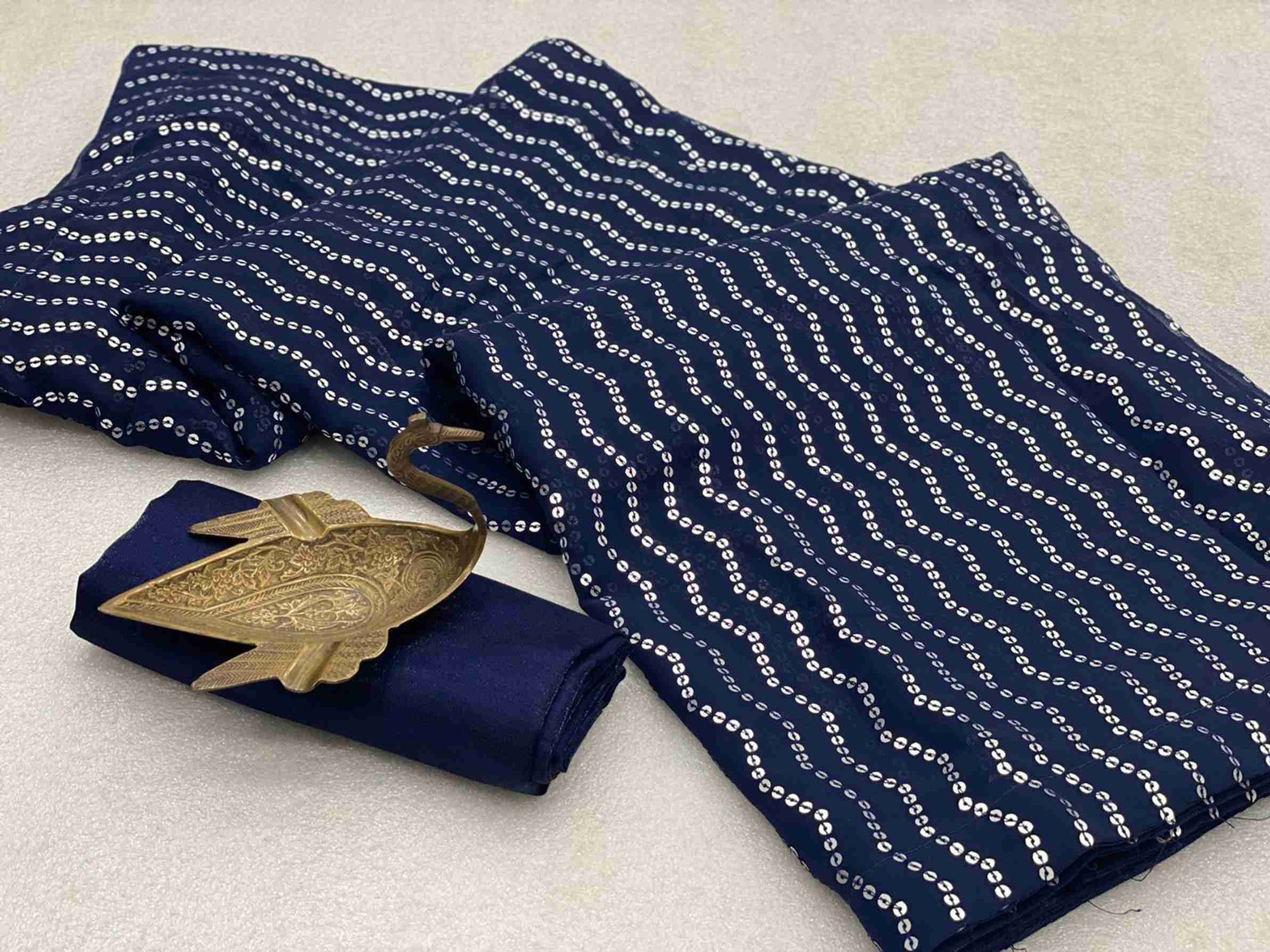 LeeliPeeri Designer Bollywood Georgette Saree with Unstitched Blouse (Blue)