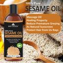 बोन ऑस्टिन प्रीमियम वर्जिन तिल का तेल सफेद तिल से निकाला जाने वाला कोल्ड प्रेस्ड तेल है, जो भारतीय मूल का एक फूलदार पौधा है। इसे सबसे अच्छा क्वीन ऑफ ऑइल्स के रूप में जाना जाता है। तिल का तेल भारतीय इतिहास में बहुत आगे जाता है, इसका उपयोग कई वैकल्पिक औषधीय उद्देश्यों जैसे शरीर और बालों की मालिश के लिए किया गया है। तिल का तेल हिंदू मंदिरों में लैंप जलाने के लिए भी प्रसिद्ध है। यह तेल अच्छाई से भरा हुआ है और हमारे देश में इसके पौष्टिक गुणों के लिए बहुत लोकप्रिय है। वर्जिन तिल के तेल में प्रभावशाली मात्रा में विटामिन, मिनरल्स, नैचुरल एंटीऑक्सिडेंट और अन्य ऑर्गेनिक कंपाउंड होते हैं। इसके विटामिन और मिनरल इंग्रेडिएंट्स जैसे आयरन, कॉपर, कैल्शियम, मैंगनीज, मैग्नीशियम, सेलेनियम और फॉस्फोरस विशेष रूप से विटामिन E और जिंक इसे त्वचा और बालों के लिए अत्यधिक फायदेमंद बनाते हैं। वर्जिन तिल के तेल में एंटी-इंफ्लेमेटरी, एंटीबैक्टीरियल, एंटीडिप्रेसेंट, मॉइस्चराइजिंग, घाव भरने, सनस्क्रीन, एंटीरहेमैटिक और डिटॉक्सीफाई जैसे कई गुण होते हैं। यह फटी एड़ी और सूखे घुटनों और कोहनी का इलाज करता है। वर्जिन तिल का तेल स्कैल्प के लिए एक बढ़िया मालिश देता है। यह स्कैल्प को डीप कंडीशन करता है और हेयर फॉलिकल्स के हेल्थ में सुधार करता है। यह स्कैल्प सोरायसिस में मदद करता है क्योंकि यह फ्लैकीनेस और ड्राईनेस को खत्म करता है। यह डैंड्रफ का भी मुकाबला करता है। वर्जिन तिल के तेल से मालिश डिप्रेशन को बेहतर तरीके से मैनेज करने में मदद करती है। यह शिशु की मालिश के लिए बहुत अच्छा विकल्प है।