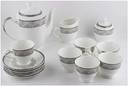 Tableware serving designer tea and coffee sets, Package content: 6 cup, 6 saucer ,1 kettle ,1 milk pot ,and 1suger pot, Material ,:fine bon china color : whjte, grey flower printed, Beautiful series lovely. Delicate design tea coffee cups
