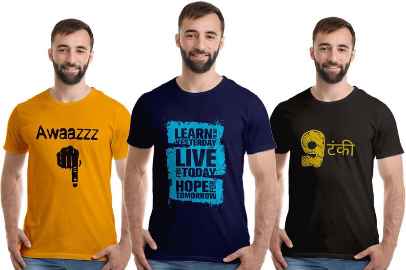 Pack Of 3 Trendy Printed T-Shirts, 3 Different Print & Color Combination, Fabric : Pure Cotton, Fit Type: Regular Fit, Pattern: Printed, Care Instructions: Machine Wash Inside Out, Mid Hot Iron Inside Out, Do Not Iron On The Prints, Do Not Chlorine Bleach