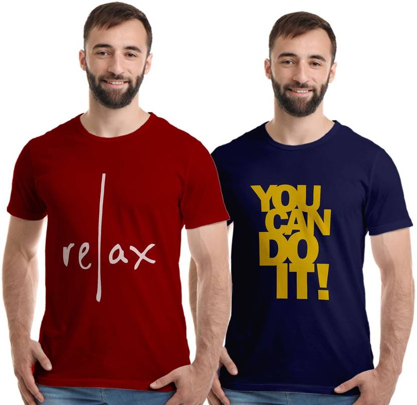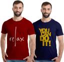 Boodbuck Pack of 2 Men Printed Round Neck Pure Cotton Dark Blue, Maroon T-Shirt