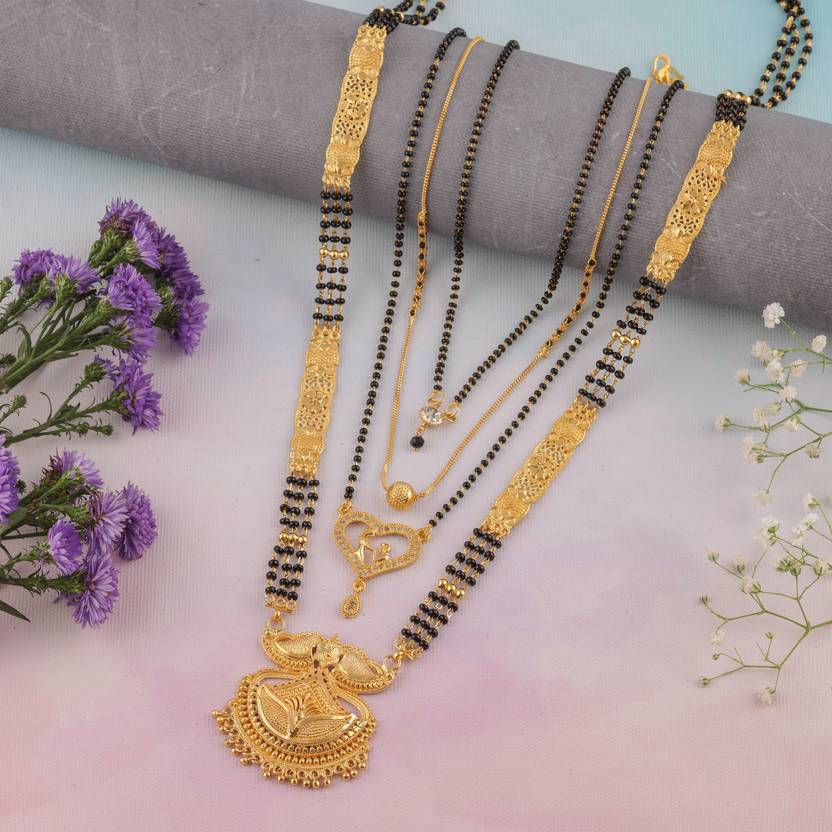 Sales Package - Pack of 4 Traditional Gold Plated Glorious Hand Meena 30 inch Long and 18 Inch Short Daily Wear Mangalsutra Tanmaniya for Women.'Mangalsutra' – The Mark of Marriage ‘Mangal’ implies auspicious and ‘sutra’ denotes thread, both making the most significant symbol of marital bliss called ‘Mangalsutra’. Mangalsutra is an ornament of a woman denoting her marital status.We at Brado Jewellery modernised the traditional form of Mangalsutra to suit the modern woman and to glamorize your contemporary look. We at Brado Jewellery design Mangalsutras that can be worn as statement necklaces. Our jewelry is designed with fine craftsmanship and dedication to meet high expectations.Renew your life with the promise to make her your life!!!!Let your love knows the importance of the commitment, trust and real bond with Brado Jewellery Mangalsutra.