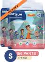 बुमटम छोटा भीम प्रीमियम बेबी पुल-अप डायपर पैंट एलो वेरा, वेटनेस इंडिकेटर और 12 घंटे के अब्सॉर्प्शन कॉम्बो पैक के साथ - छोटा - S (156 पीसेस)