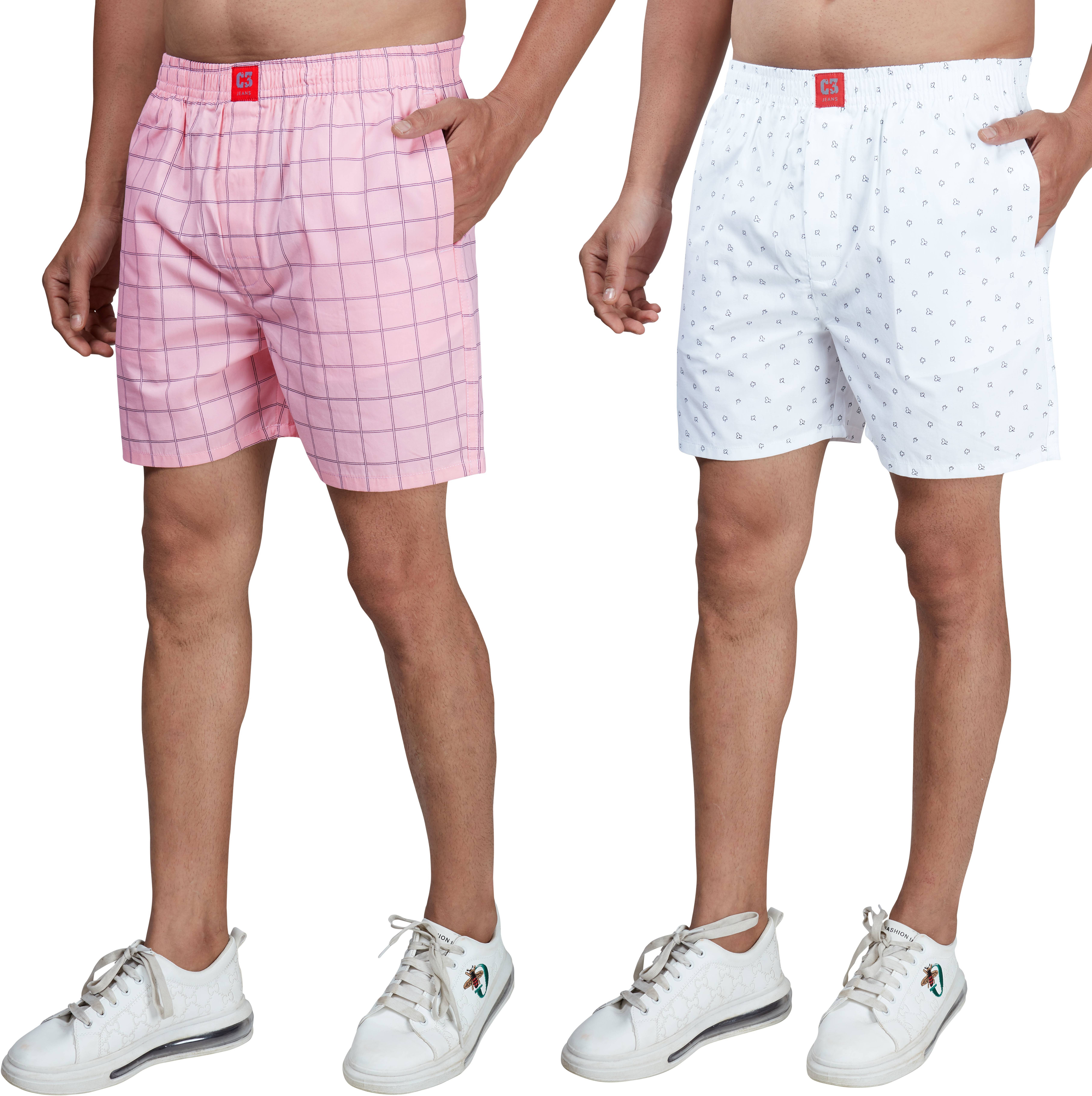 Limited Designer Series 100% Cotton printed boxer shorts for men with back pocket and button fly opening. Superior quality cotton fabric that feels soft to the skin and is comfortable for long hours. Intelligent fit that makes it possible to wear it as a standalone boxer or inner-wear.