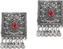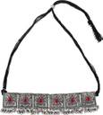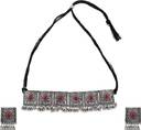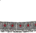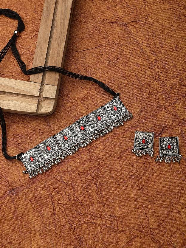 Oxidised choker necklace set with a red stone pattern.