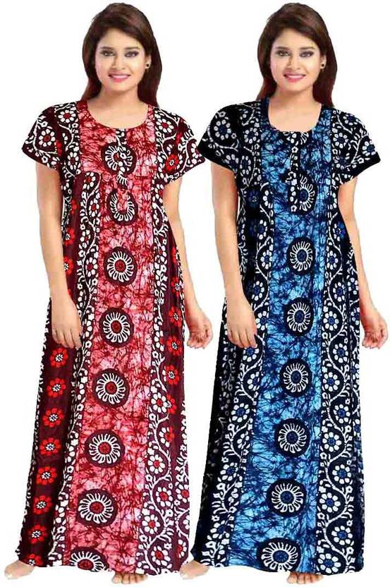 CarryWishiya offers this delicately embellished rich long Printed nighty dress for a sweat free comfort all night long. This a perfect pick for women who are fond of stylish nightwear. This Half sleeved nighty is a must have for your night wear needs. Made with 100% soft cotton to keep you cool all throughout. This beautiful nighty comes in free size and completely adjustable for 40-44 inches bust size.