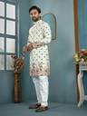 The kurta comes with a mandarin collar and buttoned placket, adding a classy and sophisticated touch. Its straight-cut silhouette ensures a comfortable fit while maintaining a sharp and stylish appearance. Ideal for festivals, weddings, family functions, and special occasions, this kurta pairs perfectly with white or off-white pyjamas or churidar.
