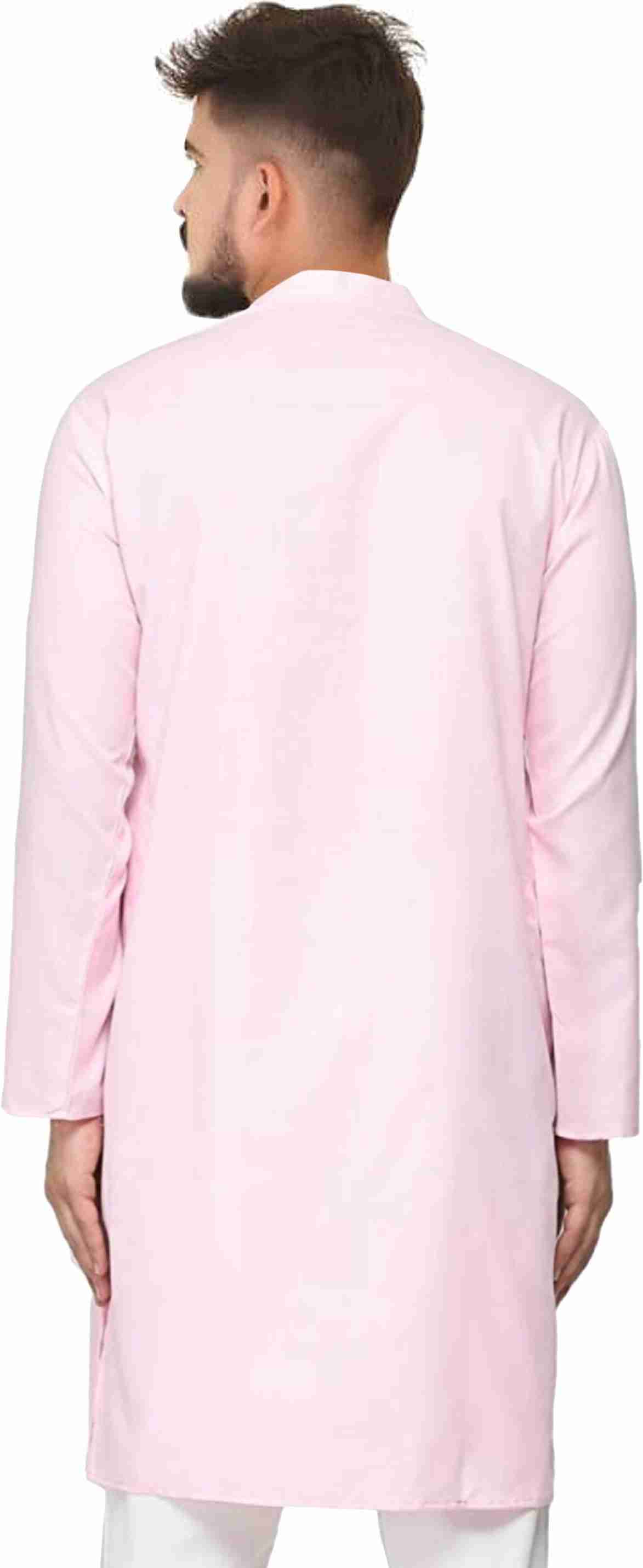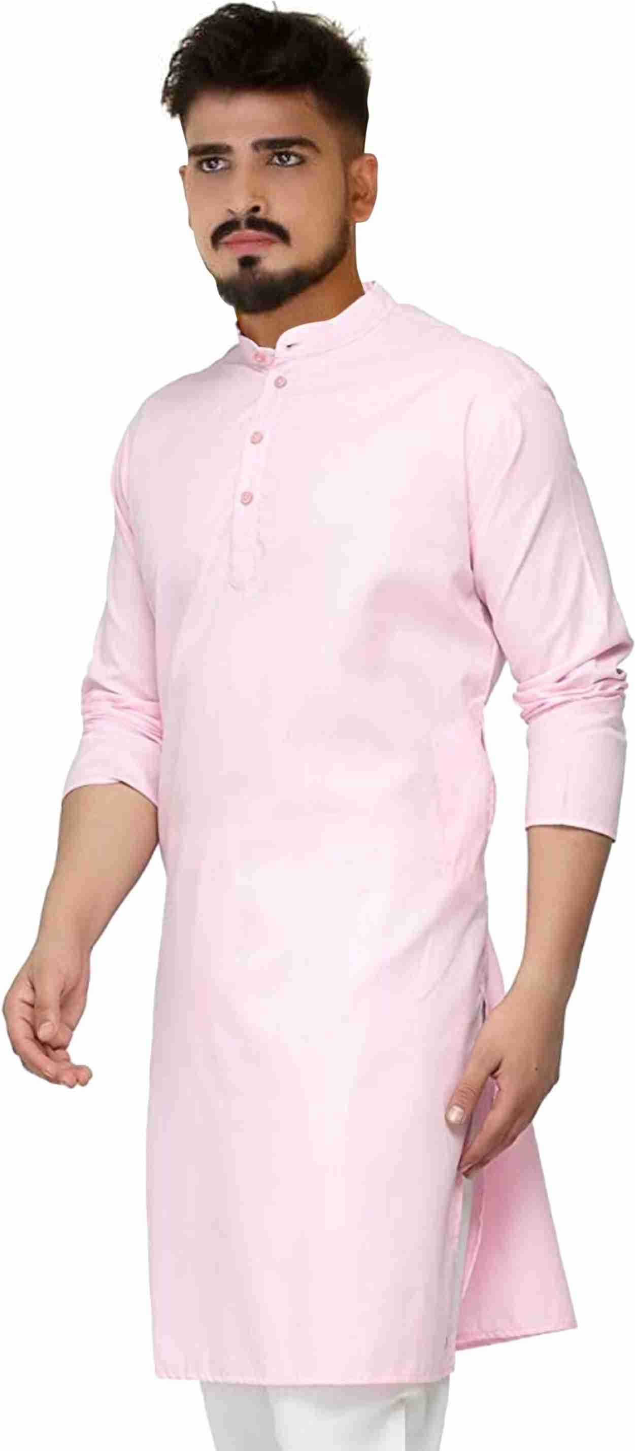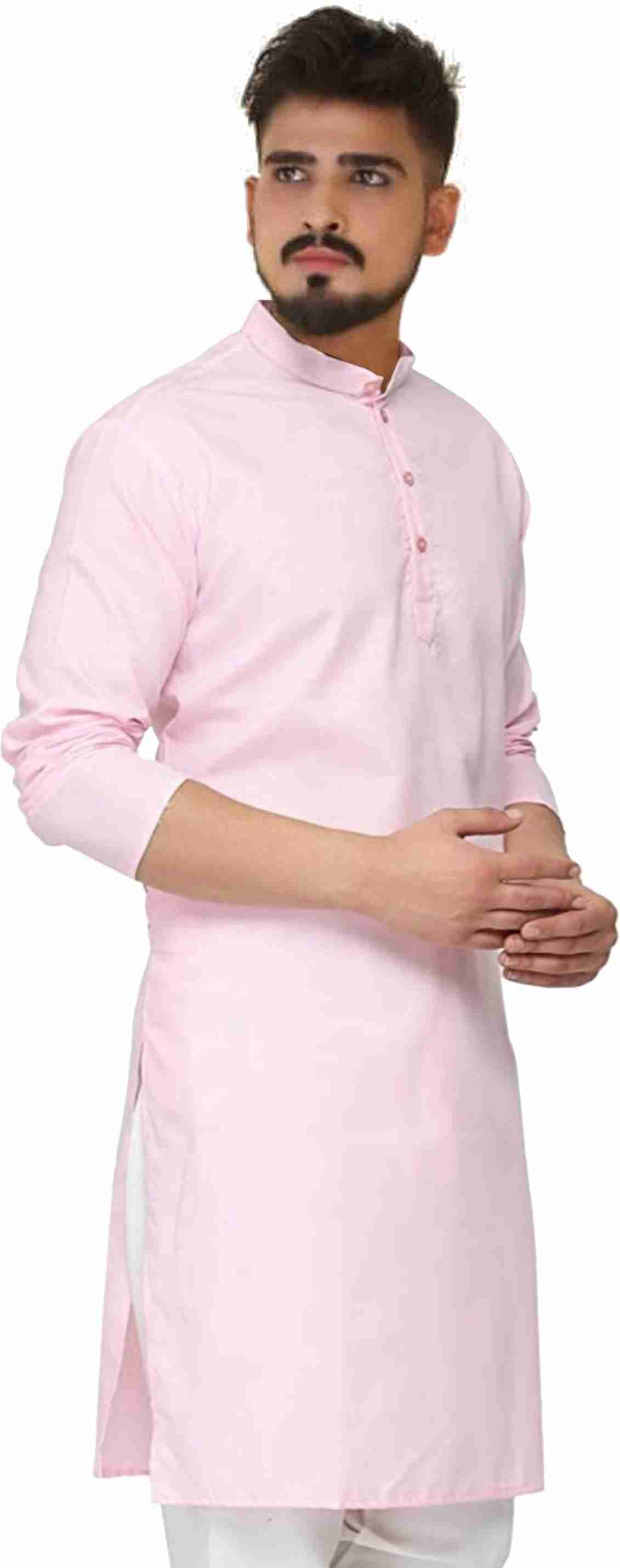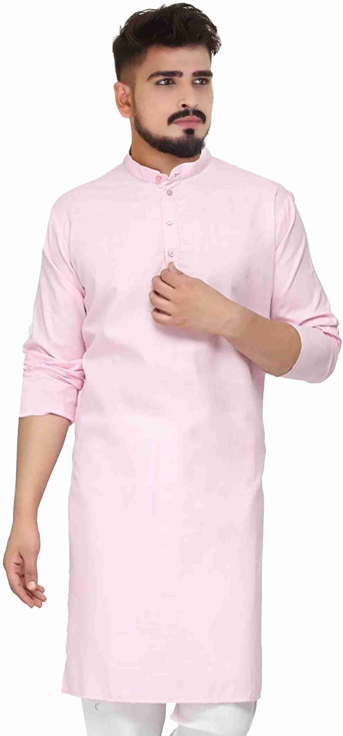 Men Solid Cotton Blend Straight Kurta (Pink)