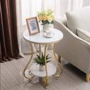 Round Metal Side/Coffee Table with Inlay Top, Living Room, Bedroom, and Office