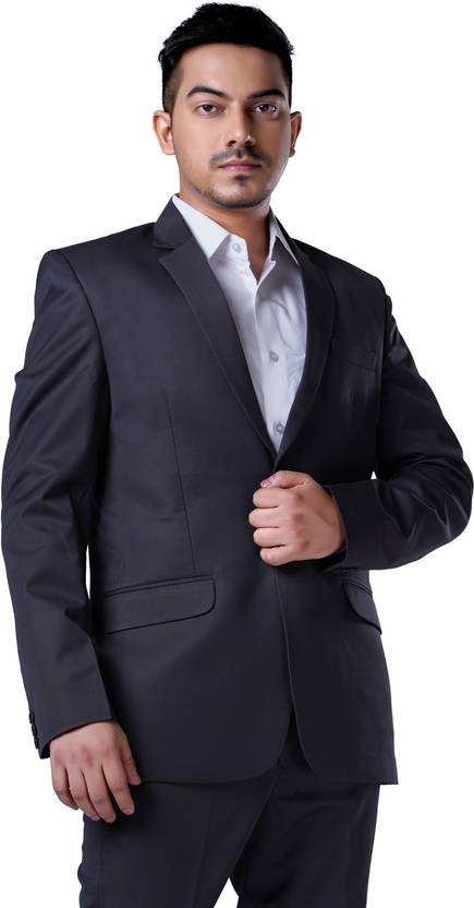 Men Solid Single Breasted Formal Blazer (Grey)