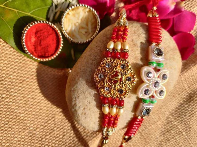 This Rakhi set symbolizes the spirit of Menhood, friendship and the heart achingly beautiful relationship between brother and sister.This Rakhi set being traditionally designed and handcrafted, fine design. Our Beautiful collection have Rakhis made with auspicious material.