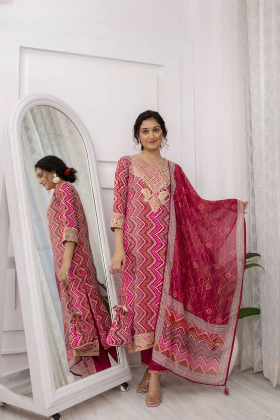 Women Viscose Rayon Kurta Pant Dupatta Set