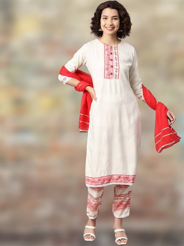 Women Viscose Rayon Kurta Pant Dupatta Set