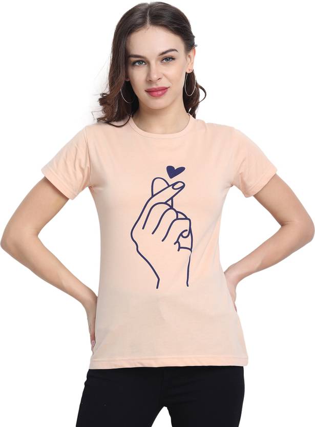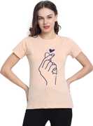 चोज़ी महिलाओं के लिए गोल गला प्रिंटेड बेज टी-शर्ट