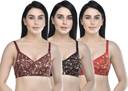 Pack of 3 Women Full Coverage Lightly Padded Bra (Brown, Black, Red)