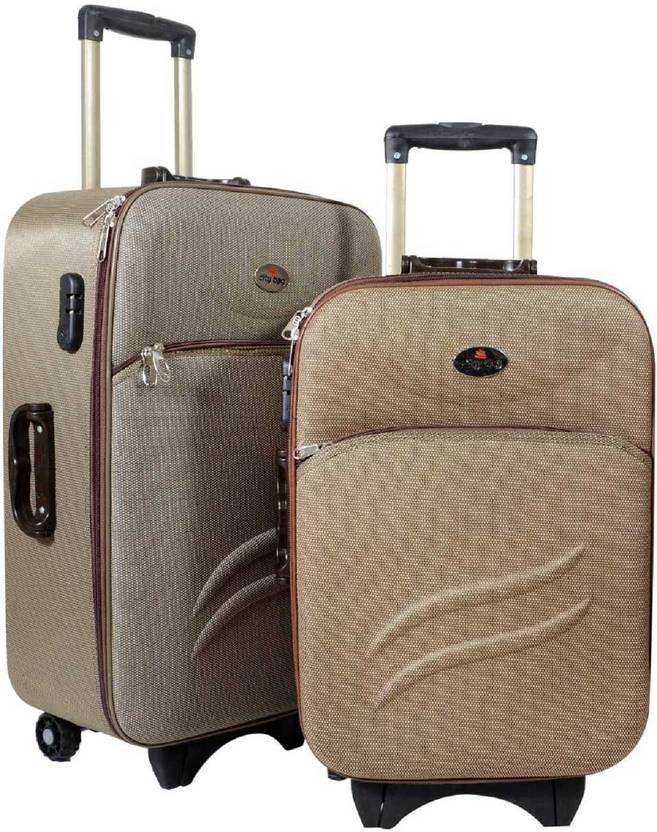 Soft Body Set of 2 Luggage 3 Wheels - TROLLEY BAG Set of 2 luggae 2 luggage bag - Brown