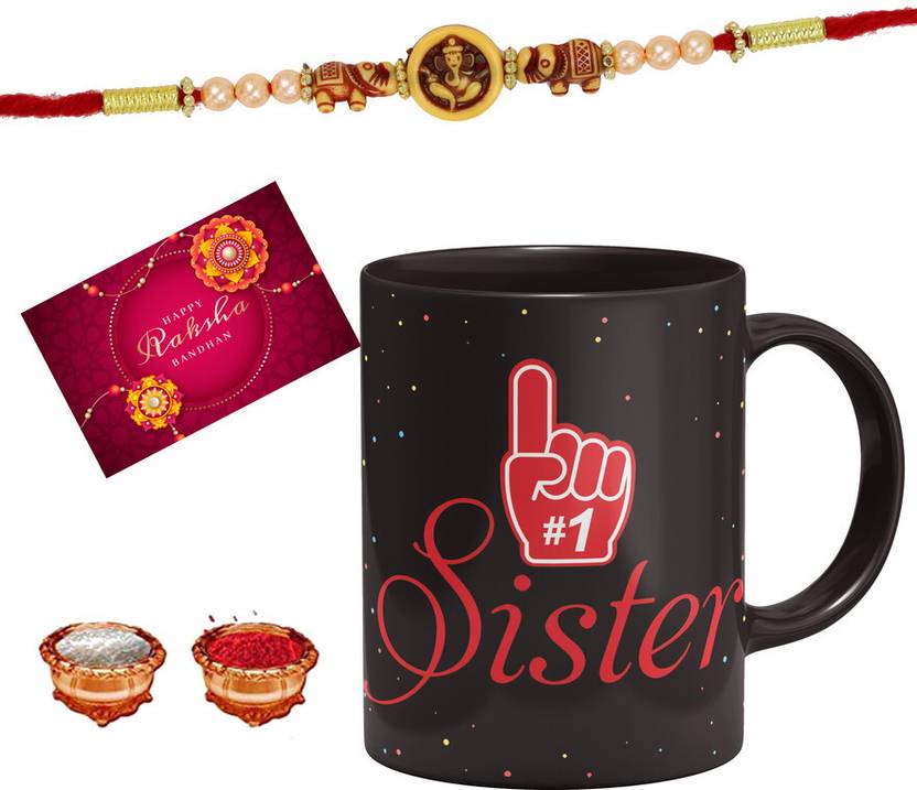1 RAKHI, 1 MUG, 1 ROLI CHAWAL, 1 GREETING CARD
